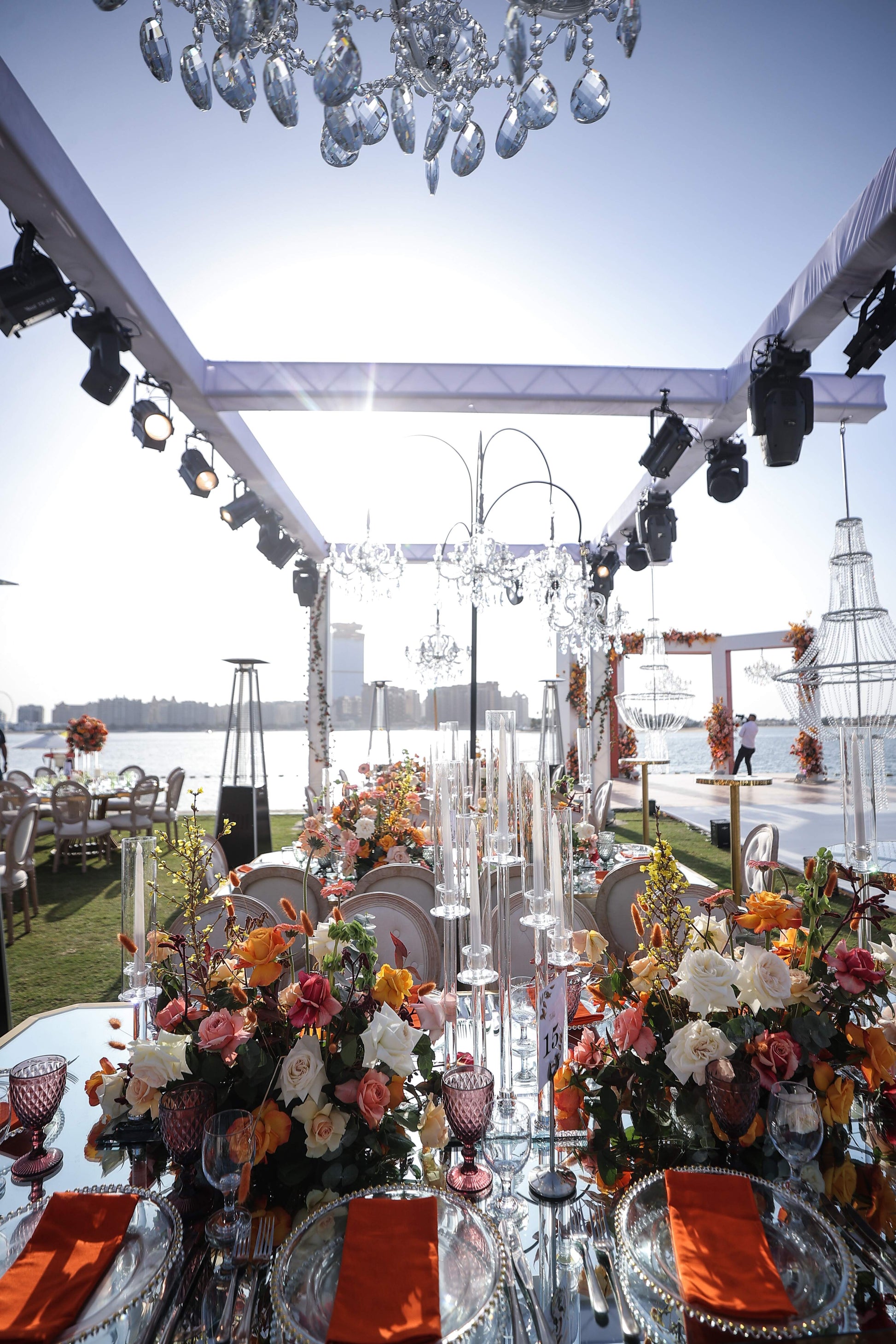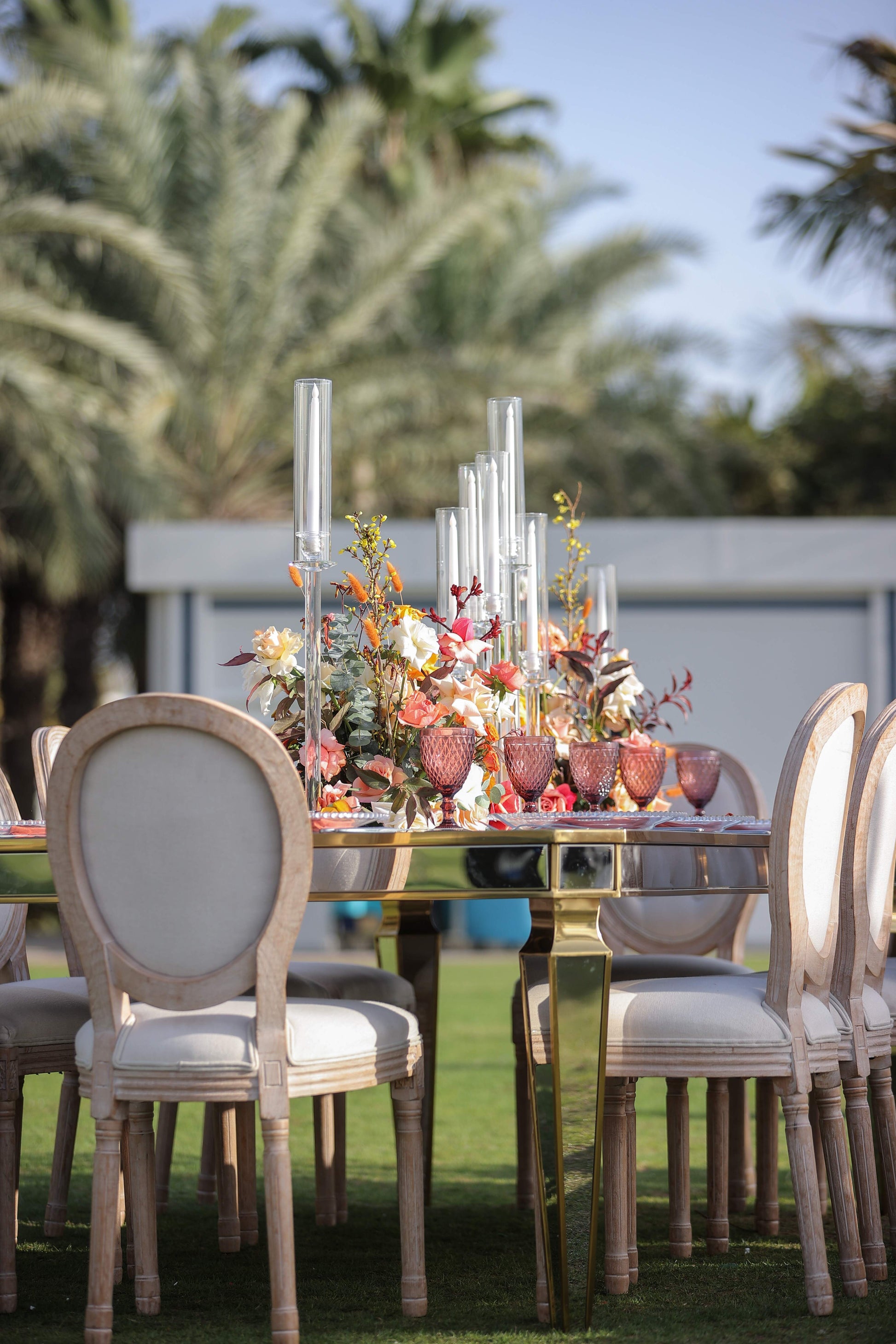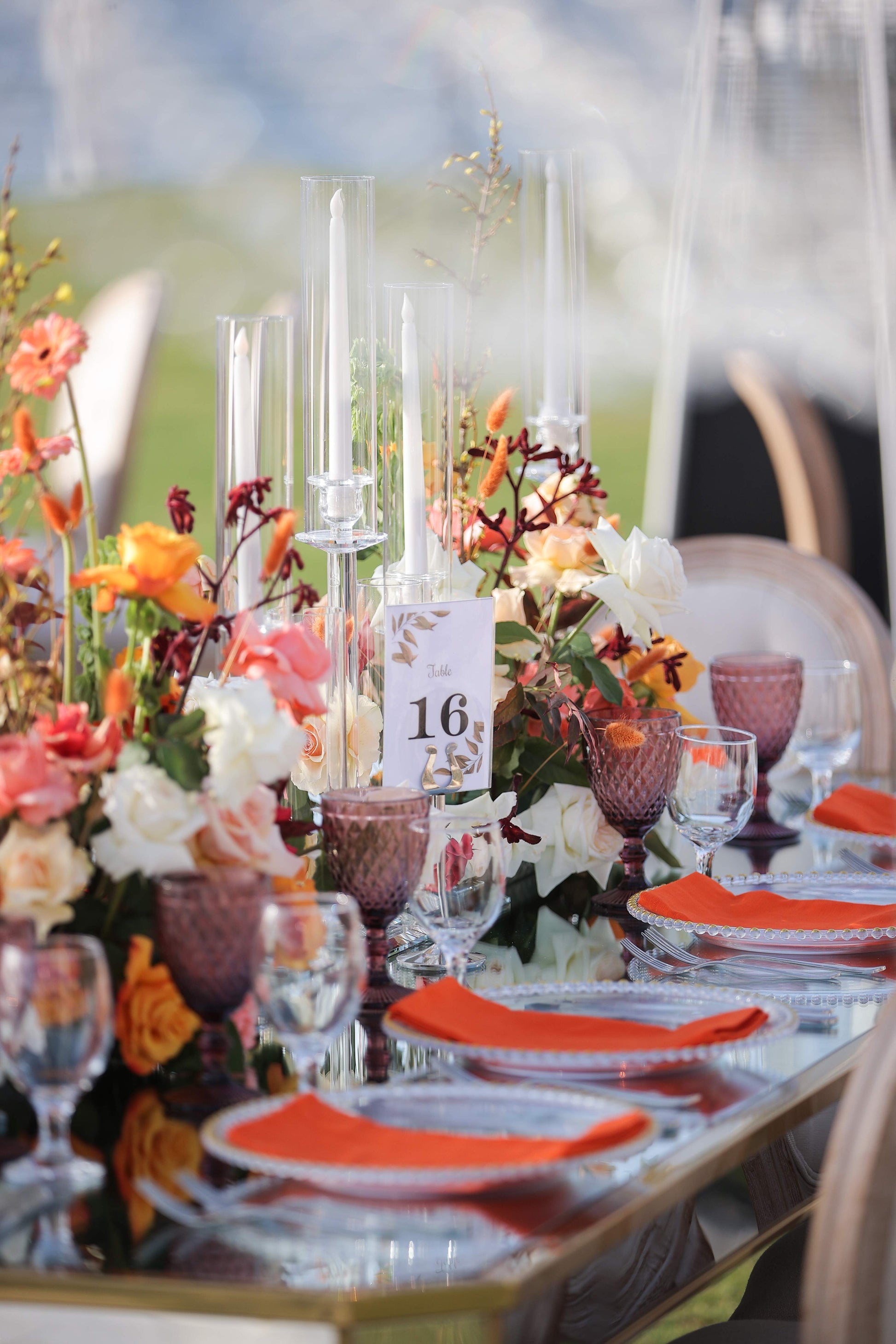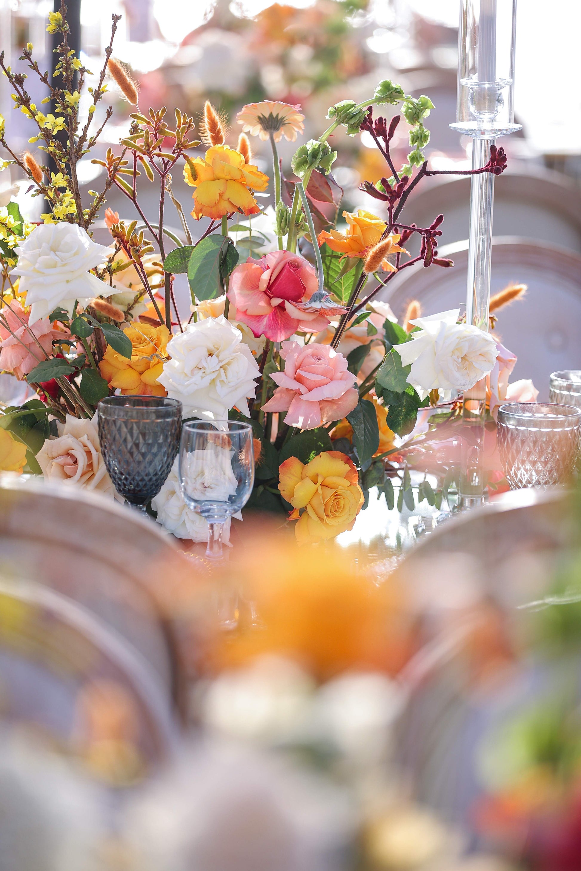 - Centerpieces fresh flowers & table accessories (candles, napkins, show plates, glasses ).
