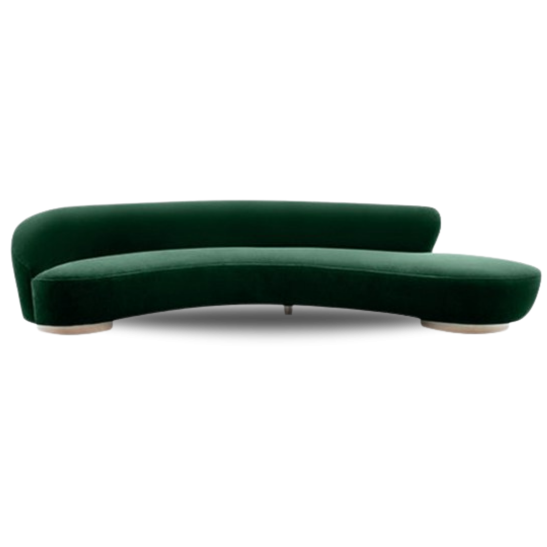 Introducing the Marseille Sofa in Velvet. Curves and ample seating define this stylish sofa. Asymmetrical and fashion-forward, the Marseille Sofa instantly transforms any room into a chic space with fun energy. Shown in Brussels Green velvet.