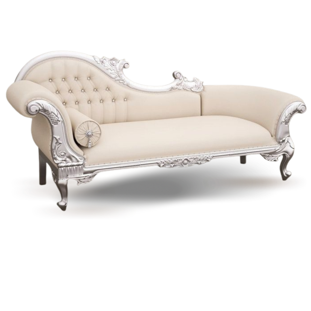 VINTAGE ITALIAN BRIDAL SOFA OYSTER VELVET WHITE LEGS